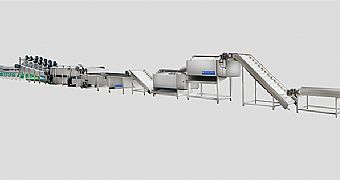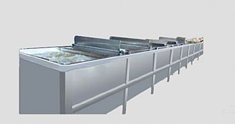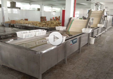 A葉菜類(lèi):收菜--分揀輸送--氣泡清洗(粗洗)--氣泡清洗殺菌機(jī)--噴淋清洗(凈洗)--風(fēng)干瀝水--包裝輸送。